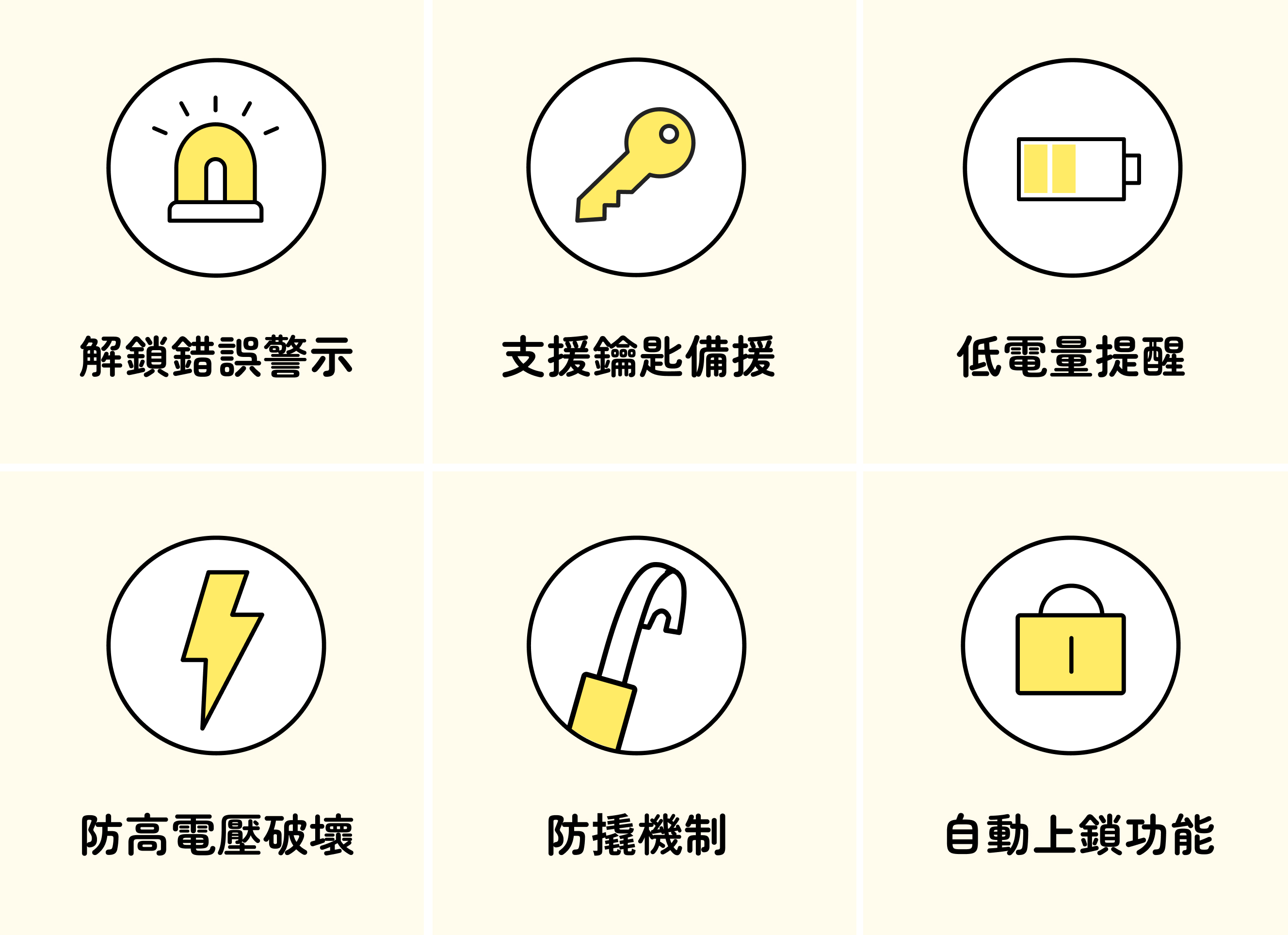 ◆防拆、防撬機制、鎖舌異常、高溫警報提示、系統鎖定警報功能。