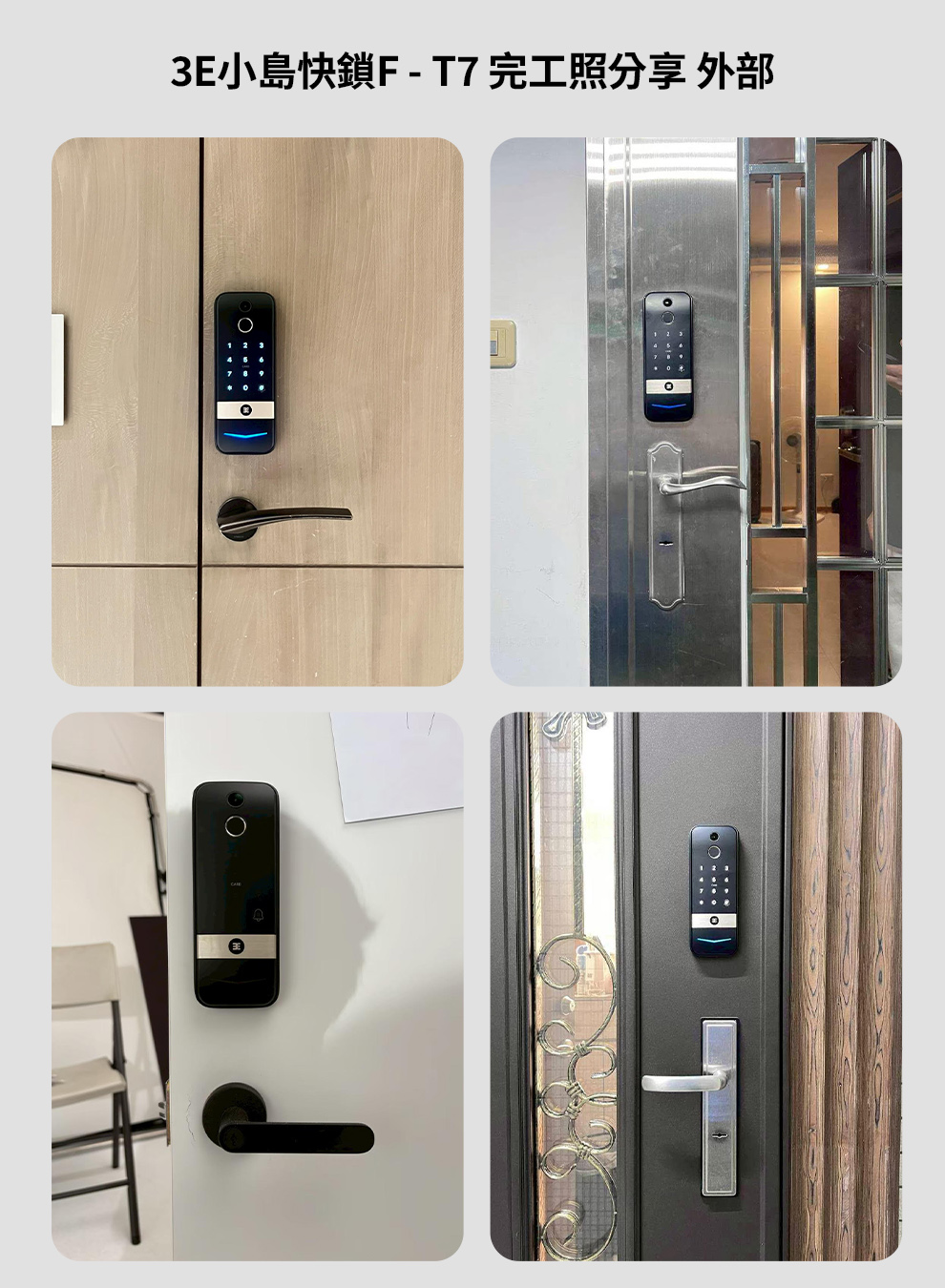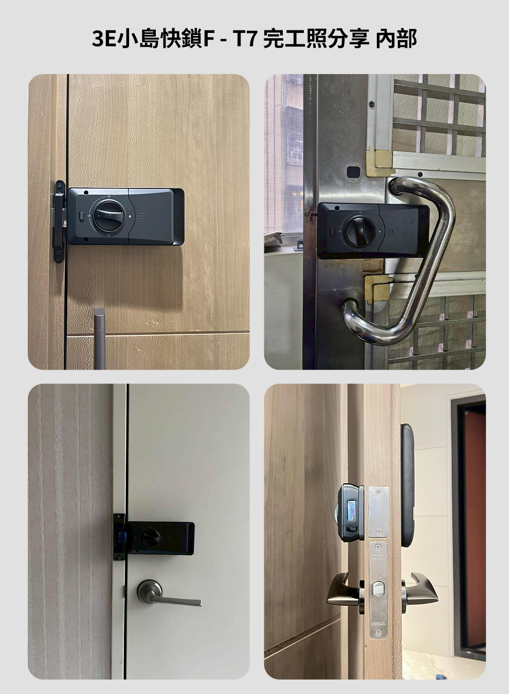 電子鎖門扇照評估:請提供門 全景外門、全景內門、側邊厚度、鐵片長度、門框 照片。若您要安裝的位置有兩扇門,請協助測量門與門之間距離幾公分的照片。