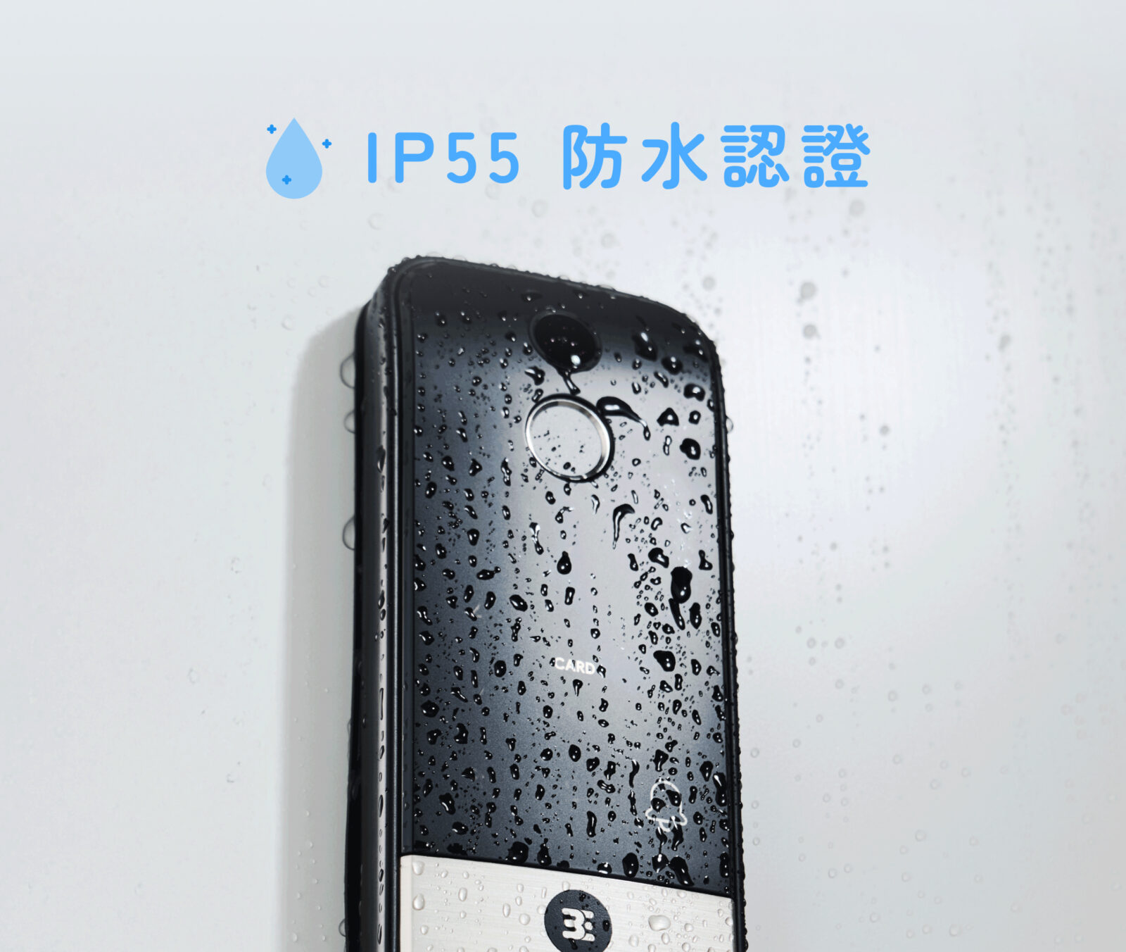 ◆IP55 防水係數,經過兩道防潮處理,提高電子鎖 200 % 的防潮耐受程度。