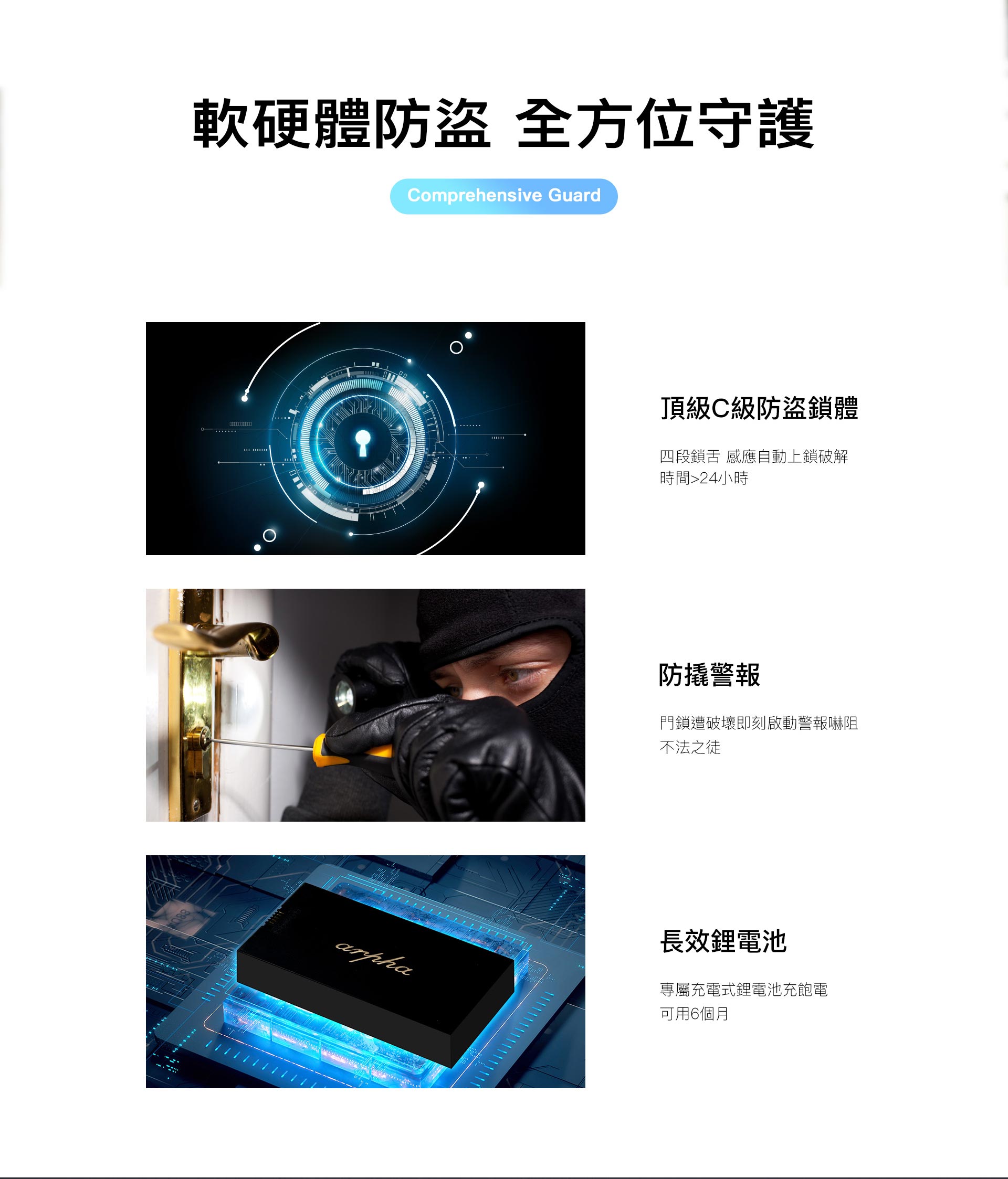 ◆防翹警報、C級鎖芯更防盜