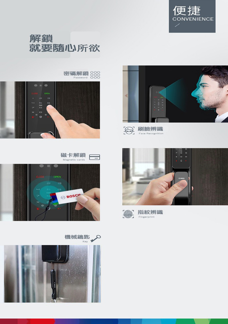 人臉 100組 指紋 100組 感應卡 (附兩張) 100組 密碼 100組 機械鑰匙 2隻