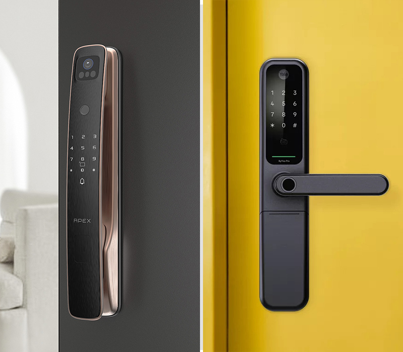 - 把手式 (平手/微勝): 結構簡單意味著故障率理論上較低。許多把手式採用半自動機械鎖體,對馬達的依賴較小,且多了一道下壓的程序使得開門時鎖舌不會有碰撞聲,整體聲響較低。